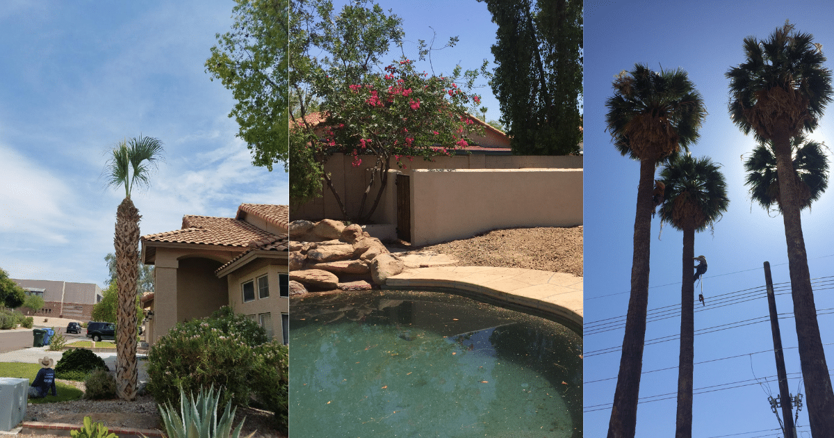 Many of the jobs we receive are people who have overgrown trees who want tree trimming work or ask us to completely remove their trees. Many trees that are not well maintained will be overgrown. It’s when these trees get overgrown that they pose safety hazards to homes and people. Having dead branches or even a dead tree on your property can be dangerous as these types of trees can easily fall during one of our many storms. In Chandler Arizona, we have a monsoon season where weakened trees can easily blow over.